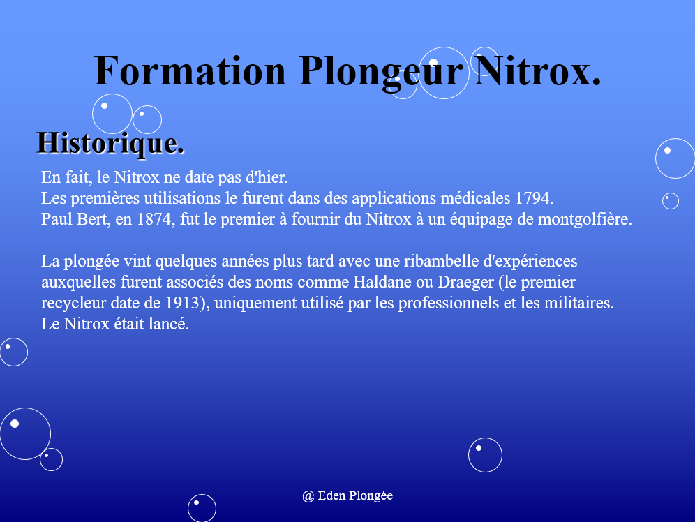 Cours théorique Plongeur Nitrox niveau 1 PowerPointsuivre ce lien : Version en ligne powerpoint.